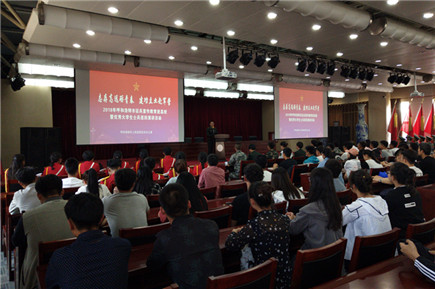 5月4日下午,2018年呼和浩特征兵宣傳教育進(jìn)高校暨優(yōu)秀大學(xué)生士兵巡回演講走進(jìn)我院,在多功能廳舉行宣講活動(dòng)。呼和浩特市警備區(qū)動(dòng)員處郭存文參謀,玉泉區(qū)武裝部副部長(zhǎng)王忠輝,我院學(xué)工處處長(zhǎng)高飛、副處長(zhǎng)李正濤、學(xué)生科長(zhǎng)紀(jì)圖雅出席活動(dòng)。300余名學(xué)生現(xiàn)場(chǎng)聆聽。